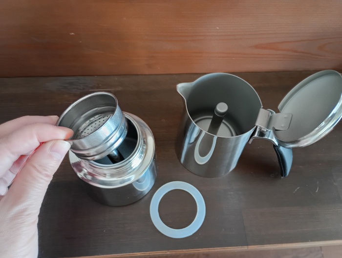 下部の水を入れるタンク、豆を入れるバスケット、コーヒーが溜まる上部の3つ。