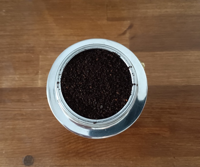 タンクにバスケットをセットして、豆をぎゅっと押し付けないように、擦りきりでぴったり入れるようにします。